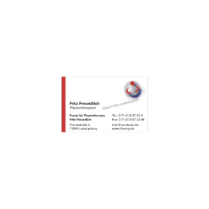 Passende Visitenkarten erhalten Sie von uns mit Ihrem individuellen Eindruck. Nach Eingang der Bestellung klären wir Text und Layout mit Ihnen ab. Qualitätskarton 300 g/m². Format: 8,5 x 5,5 cm. 250 oder 1000 Stück.