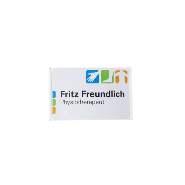 Namensschilder sind ein kleines, jedoch nicht zu unterschätzendes Instrument, um den persönlichen Kontakt zwischen Patient und Therapeut herzustellen und einen professionellen Auftritt zu unterstützen.